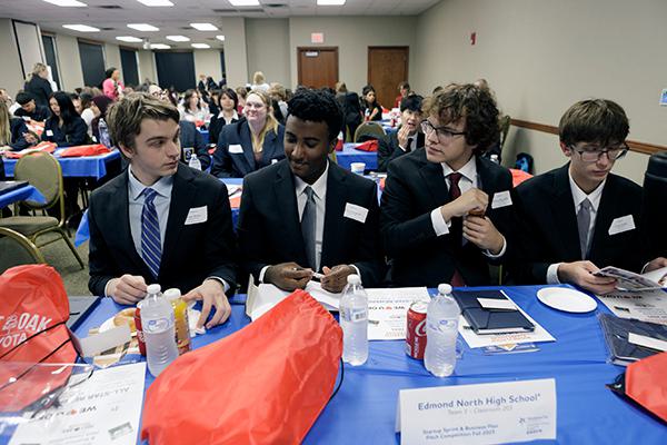 More than 175 students from 15 high schools and career technology centers across the state gathered on the Ļć½¶Šć campus to compete in a full-day entrepreneurial challenge. Students traveled from the Ļć½¶Šć metro area, Tulsa, Drumright, and Checotah to test their business ideas before a panel of professional judges, including several Meinders alumni, who evaluated creativity, feasibility, and presentation.